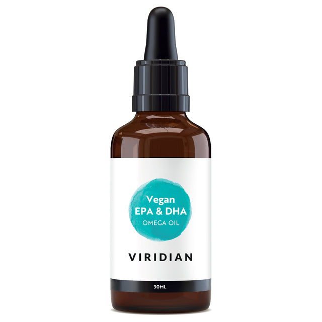 Sourced from sustainable marine algae (Schizochytrium sp.), this supplement offers a vegan and vegetarian form of omega 3 oil. This fish-free omega oil is the ideal addition to any vegan diet. Modern diets are often characterised by a deficiency of omega 3, an essential nutrient which cannot be produced by the body but must be consumed via diet or supplementation. The richest and most well-known form of omega 3 is from oily fish, making it difficult for vegans and vegetarians to consume adequate levels of this important fatty acid. Vegan EPA & DHA provides the omega 3 fatty acids Eicosapentaenoic acid (EPA) & Docosahexaenoic acid (DHA) from sustainably grown marine algae. Our Vegan EPA & DHA is formulated with South American grown chia seed oil to supply the full spectrum of omega 3, 6 and 9, along with natural orange oil for a great-tasting dietary supplement. We recommend taking alongside our Essential Vegan Multivitamin for optimum support. This product offers a fish-free vegan and vegetarian omega 3 oil alternative providing 225mg EPA & DHA per ml. A daily intake of 2ml per day contributes to the normal function of the heart, eyes and brain. Contains 100% active ingredients, formulated by expert nutritionists with no artificial fillers and no nasties. Sourced according to Viridian’s strict ethical criteria including no animal testing, GMO or palm oil.