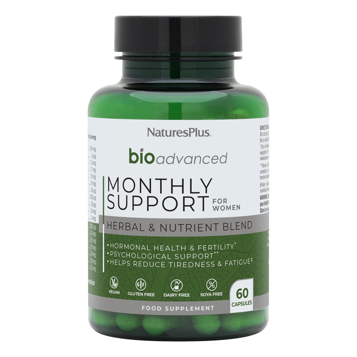 Is your monthly cycle a source of discomfort Turn to BioAdvanced Monthly Support, a whole food–based blend of nutrients and botanicals tailored to help no matter where you are in your cycle. BioAdvanced formulations from NaturesPlus—each designed to uniquely address your needs.