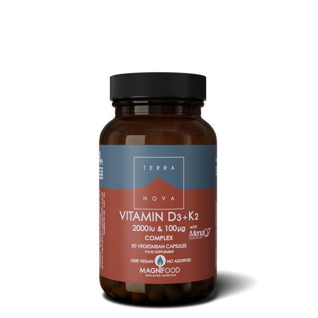 Vitamin D3 2000iu & Vitamin K2 100ug Complex with MAGNIFOOD blend including Pumpkin Seed, Shiitake Mushroom, Kale & Parsley. The holistic innovation developed by Terranova utilises whole, unadulterated, phyto-rich foods and botanicals, many of which are fresh freeze-dried. Each MAGNIFOOD ingredient has been carefully chosen to enhance bioavailability, provide synergistic enzymes, increase nutritional activity, protect from oxidative damage, and support the product’s functions/applications. Research shows that fresh freeze-drying of plants is superior in retaining potency and preserving biochemical complexity, offering high solubility and greater shelf stability.